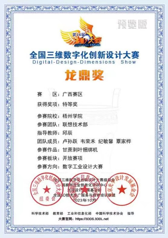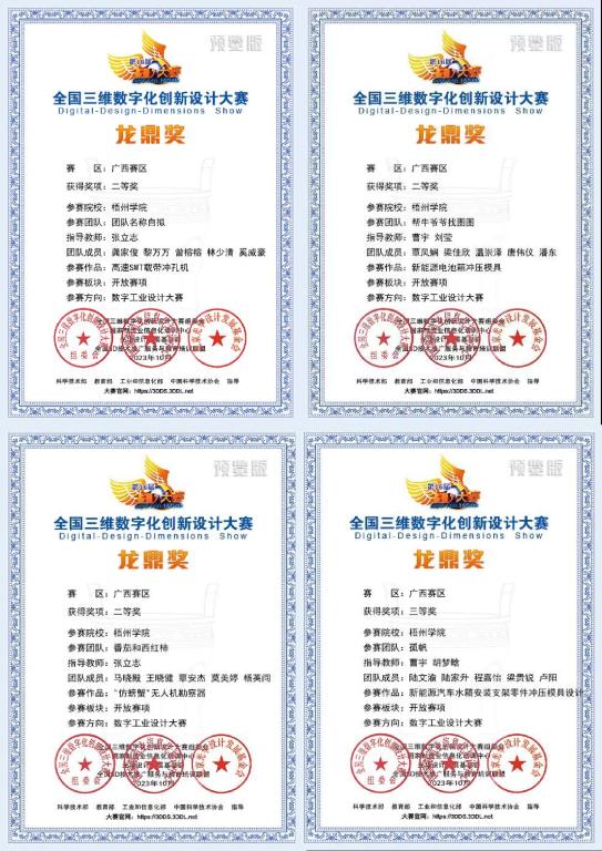 近日,2023年第16届全国三维数字化创新设计大赛广西赛区线上比赛落下帷幕,赛项主题为“虚实无界”、“元”创未来。自今年3月以来,机械与资源工程学院学生在老师们的带领下积极参赛,经过数月的努力备战,最终与南部区域的选手同台竞技,斩获特等奖一项,二等奖三项,三等奖一项。