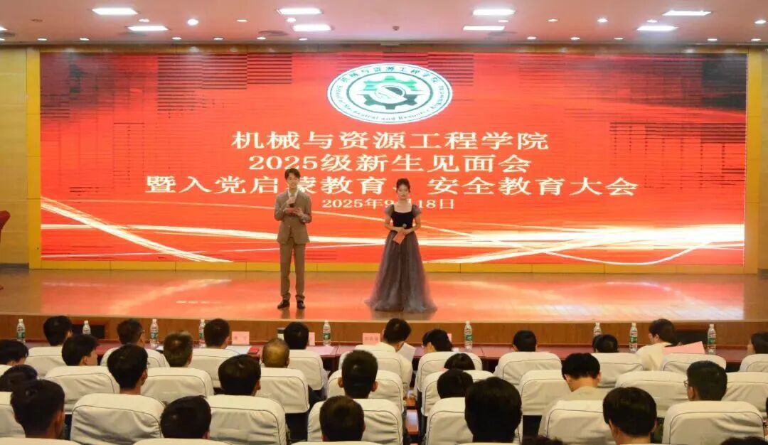 9月18日晚,机械与资源工程学院在明理楼一楼学术报告厅举办2025级新生见面会暨入党启蒙教育、安全教育大会。学院领导班子、教师代表、新生辅导员、班主任和六百余名新生共同参会。