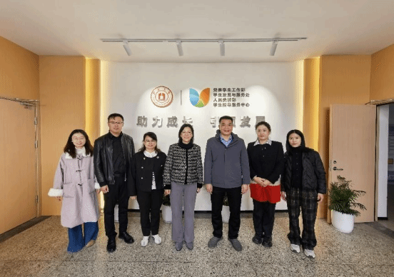 在宁波大学学生工作处,我院一行和处长胡铭、副处长张海华等交流学生教育管理服务经验,并亲切看望了我院在该处跟班学习的辅导员李文君老师。我院一行还实地观摩了宁波大学校园双选会,了解就业市场动态与校企对接模式。