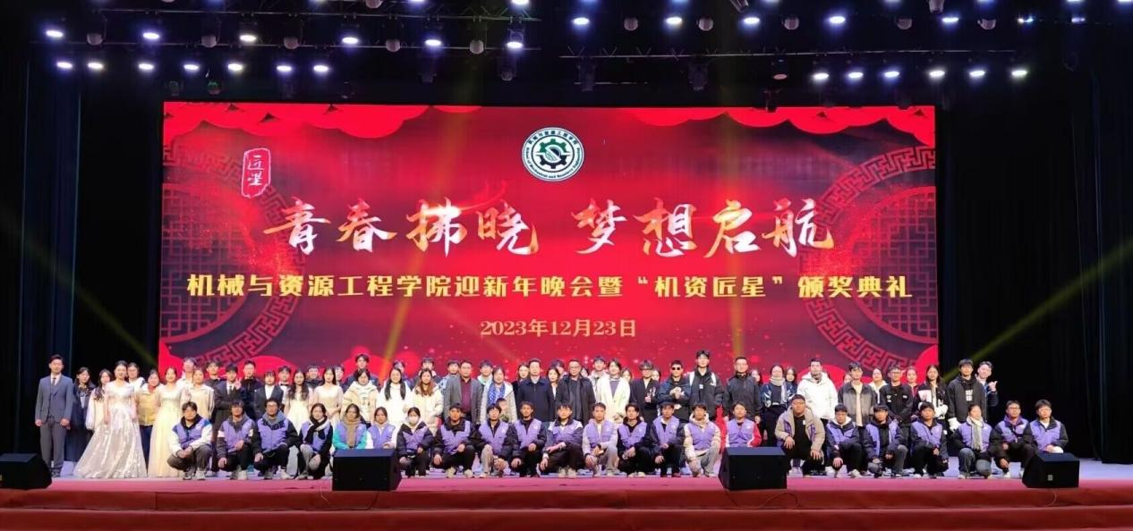 12月23日晚上,机械与资源工程学院在在体育馆三楼举行“青春拂晓,梦想起航”迎新年晚会。学院党委书记张立杰、学院院长钟山、学院党委副书记许玉婷以及学院师生参加晚会。