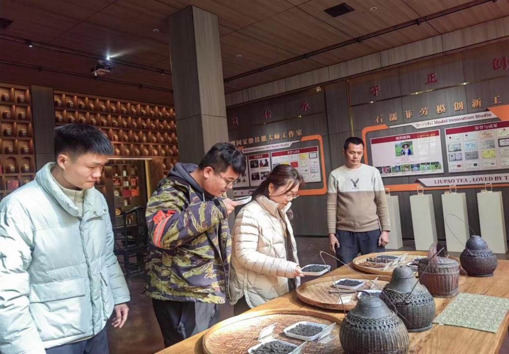 调研组一行先后参观了濡菲六堡茶展销中心、韦洁群国家技能大师工作室以及濡菲·山畔民宿,详细了解黑石山茶厂的发展历程和运营情况,深入感受“非遗”传承赋能文旅发展。调研期间,双方在技能人才培养、联合技术攻关、实习基地建设等方面探索发展新模式,实现校企优势互补、资源互用。