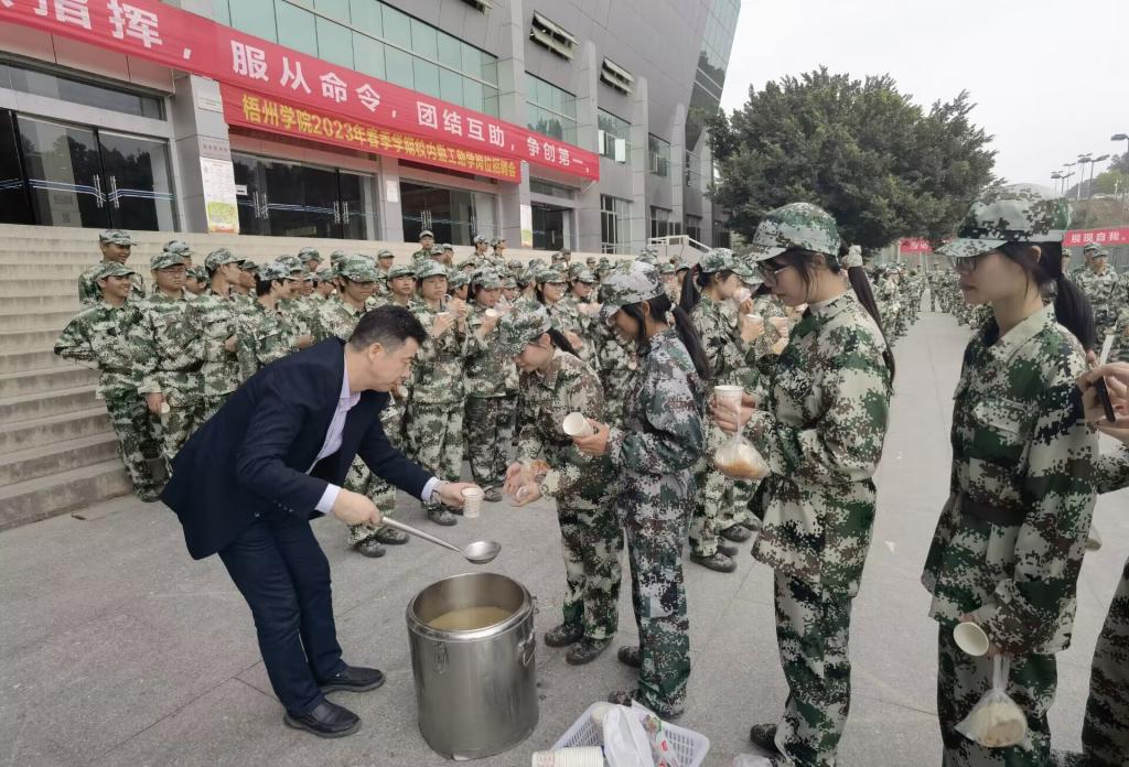 学院领导和老师们还为同学们送来了爱心面包和绿豆汤,给正在军训的同学们加油打气,并询问大家最近军训的情况,让在场的同学都感受到了深深的温暖与关怀。