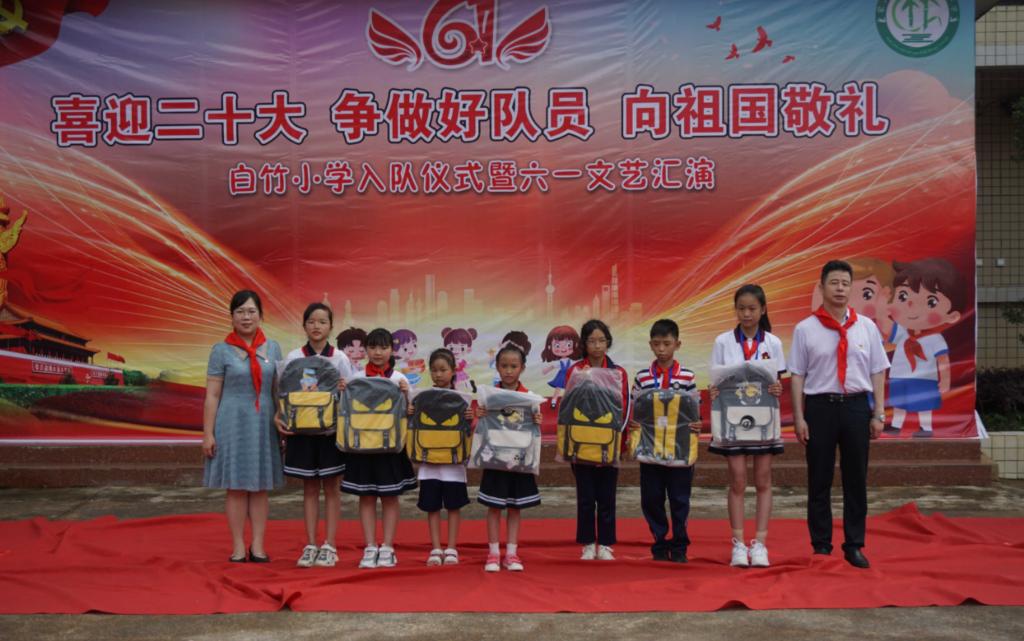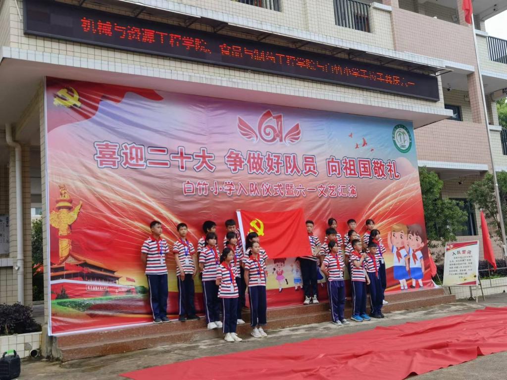 共建活动在白竹小学庄严的入队仪式中拉开序幕,白竹小学的孩子们通过大家喜闻乐见的艺术表演形式,满怀激情,载歌载舞,生动的表达了孩子们对六一儿童节的喜悦之情。机资学院和食药学院的同学们给孩子表演了精心准备的节目;学院的党员老师们给孩子们讲述了生动的党史故事,拉近了与小朋友的距离,通过新颖的形式引导孩子们坚定理想信念。