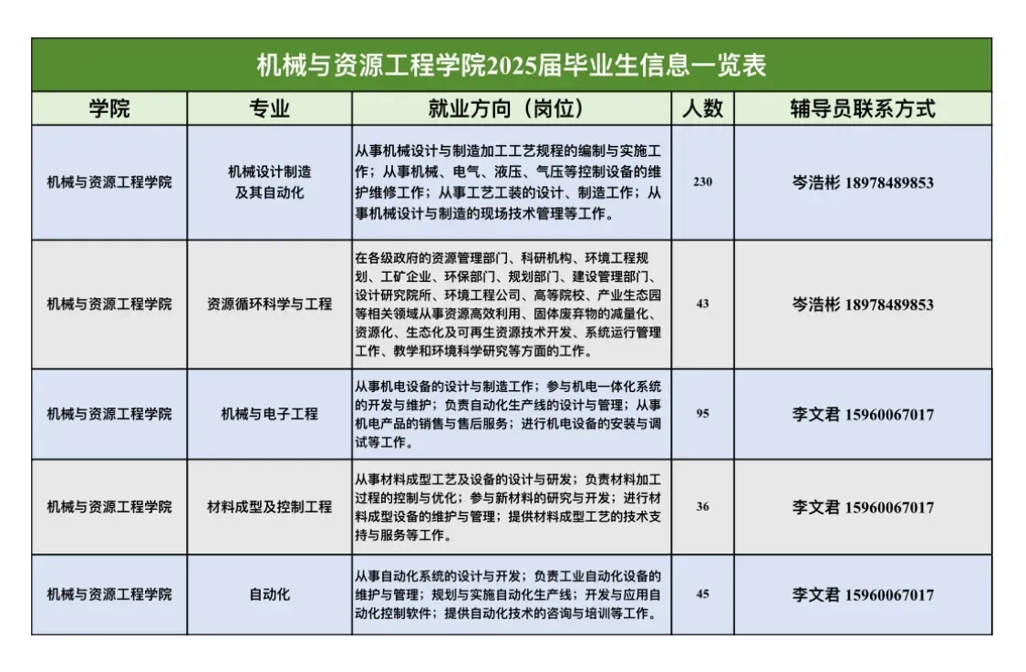 机械与资源工程学院就业对接辅导员:李老师 电话:15960056017