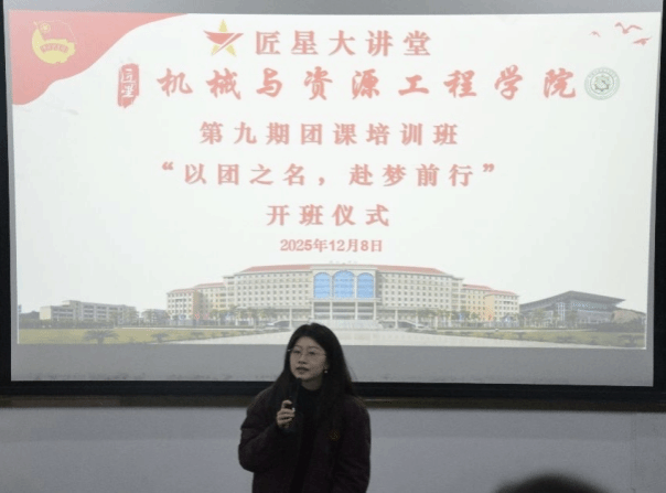 为进一步加强共青团组织建设,提升青年团员的思想政治素养与综合能力,12月8日,机械与资源工程学院在北区教学楼阶梯教室J109举行“以团之名,赴梦前行”第九期团课开班仪式,为冬日校园注入滚烫的青春动能。