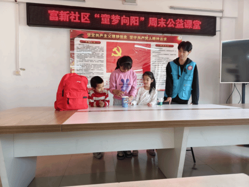 为弘扬新时代青年的奉献精神与责任担当,以志愿教学助力社区儿童成长,11月22日上午,机械与资源工程学院青年志愿者分会组织志愿者前往富新社区,开展“童梦向阳”周末公益课堂活动,为孩子们带去一堂别开生面的“离心力”物理实验课。