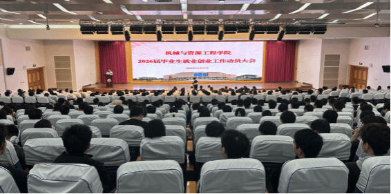 12月17日,机械与资源工程学院在明理楼一楼学术报告厅召开2026届毕业生就业创业工作动员大会。大会紧扣“高质量充分就业”核心目标,全面落实学校就业创业工作部署,聚焦机械制造、资源开发、智能制造等领域发展趋势,以政策解读、形势分析、经验分享为核心环节,学院全体教职工和2026届毕业生参会。学院党委书记陈春潮做动员讲话,学院院长郭少朋做2026年就业创业工作布置,学院副院长曹宇做2025年就业创业工作总结,教师代表林达濠做就业指导。会议由学院党委副书记黄雪宁主持。